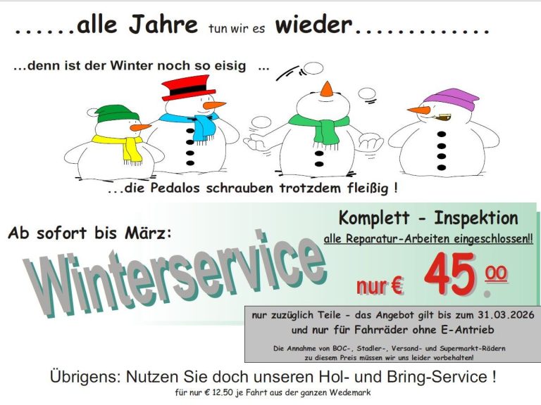Unsere Werkstatt ist häufig sehr ausgelastet, bitte rufen Sie uns an, bevor Sie Ihr Fahrrad bringen - Danke!